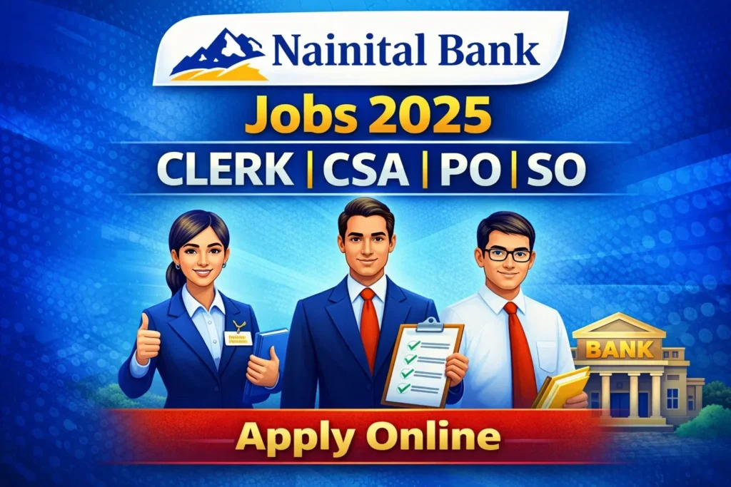 Nainital Bank has released the official notification for Clerk, Customer Service Associate (CSA), Probationary Officer (PO) and Specialist Officer (SO) vacancies for the year 2025. This recruitment drive provides an excellent opportunity for aspirants seeking a banking job in a reputed private sector bank with growth prospects, attractive salary, and job security.