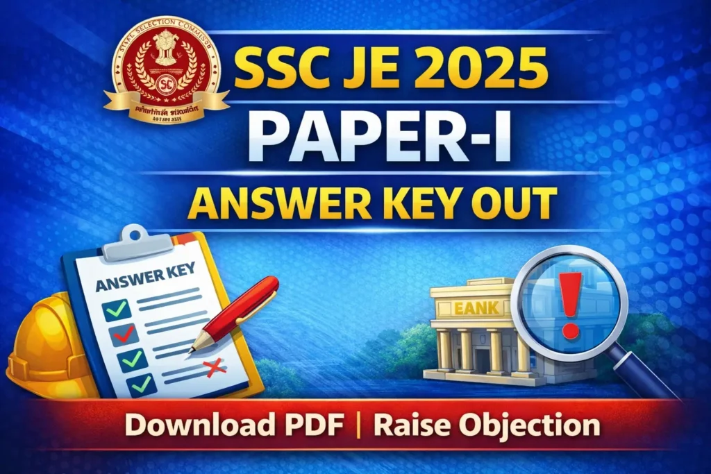 The Staff Selection Commission (SSC) has officially released the SSC Junior Engineer (JE) Paper-I Answer Key 2025 on its official website. Candidates who appeared in the SSC JE Paper-I Examination 2025 can now check and download the provisional answer key along with their response sheet and question paper by logging in with their registration details.